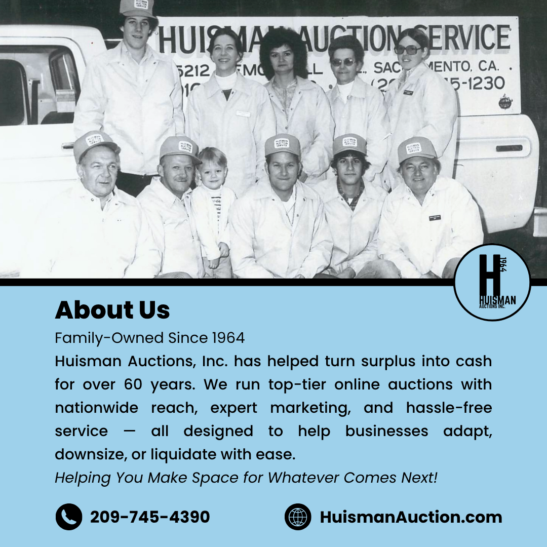 Since 1964, Huisman Auctions, Inc. has been a family-owned business spanning three generations of auctioneers. We’ve built a reputation for running top-tier nationwide auctions, turning millions of dollars in assets into cash every year.