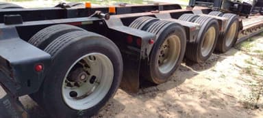 HYDRAULIC RGN LOWBOY TRAILER, 55 TON, 4 AXLE, FLIP 4TH AXLE, FLIP NECK EXTENTION, WET LINE, RAMPS, OUTRIGGERS, DECK LENGTH 26', 8'6" WIDE, AIR RIDE SUSPENSION, WOOD DECKING, ALL ALUMINUM WHEELS, 275/70R22.5***ADDITIONAL TITLE FOR STRINGER AXLE***